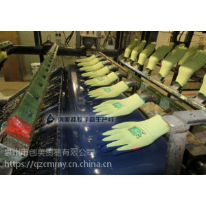 1、創美勞保手套浸膠機設備可根據各種材料(天然膠、丁晴膠、PVC、PC固化成型的工藝進行人性化設計,流程合理、自動平衡補膠系統,使產品穩固,涂層厚薄、長短均勻,無垂點,受溫均勻,產量高,脫模容易簡單等特點。